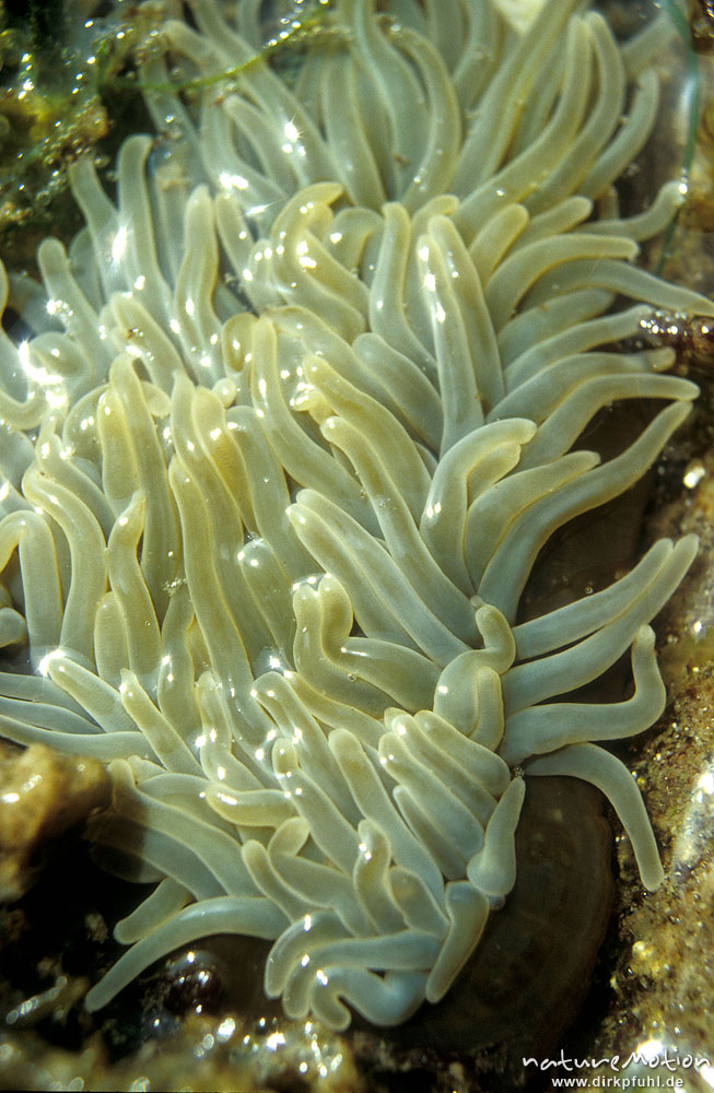 Seeanemone, , Actiniaria, Tentakel einer Seeanemone, Felsbecken in trockengefallenem Felswatt, Bretagne, Frankreich