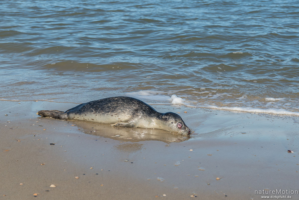 Seehund, Phoca vitulina, Phocidae, totes Tier im Spülsaum, Spiekeroog, Deutschland
