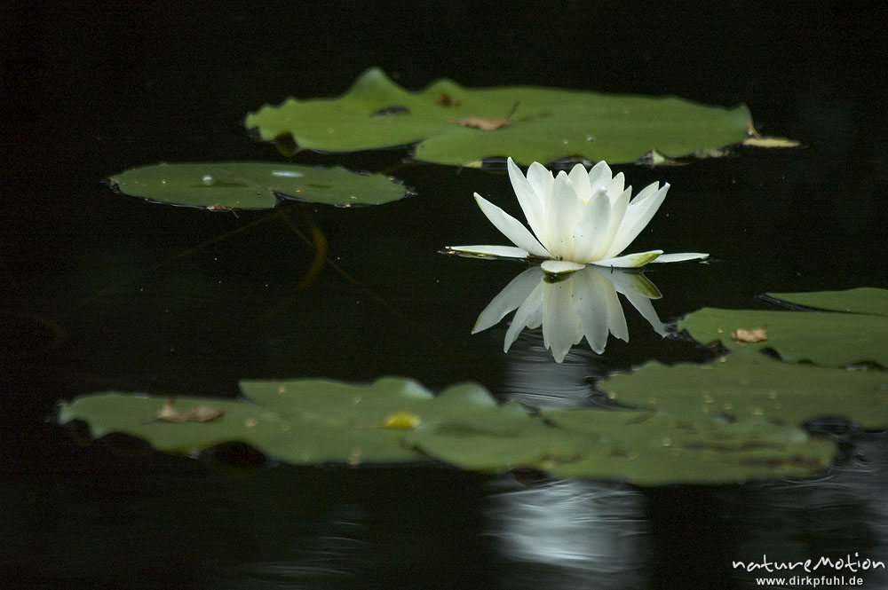 Seerose, Nymphaea alba, Blüte und Schwimmblätter, Kanal, Müritz-Nationalpark, Mecklenburger Seen, Deutschland