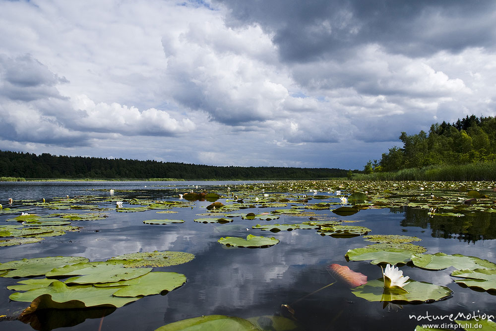 Seerose, Nymphaea alba, Nymphaeaceae, Seerosenteppich auf dem Kleiner Kotzower See, Granzow, Deutschland