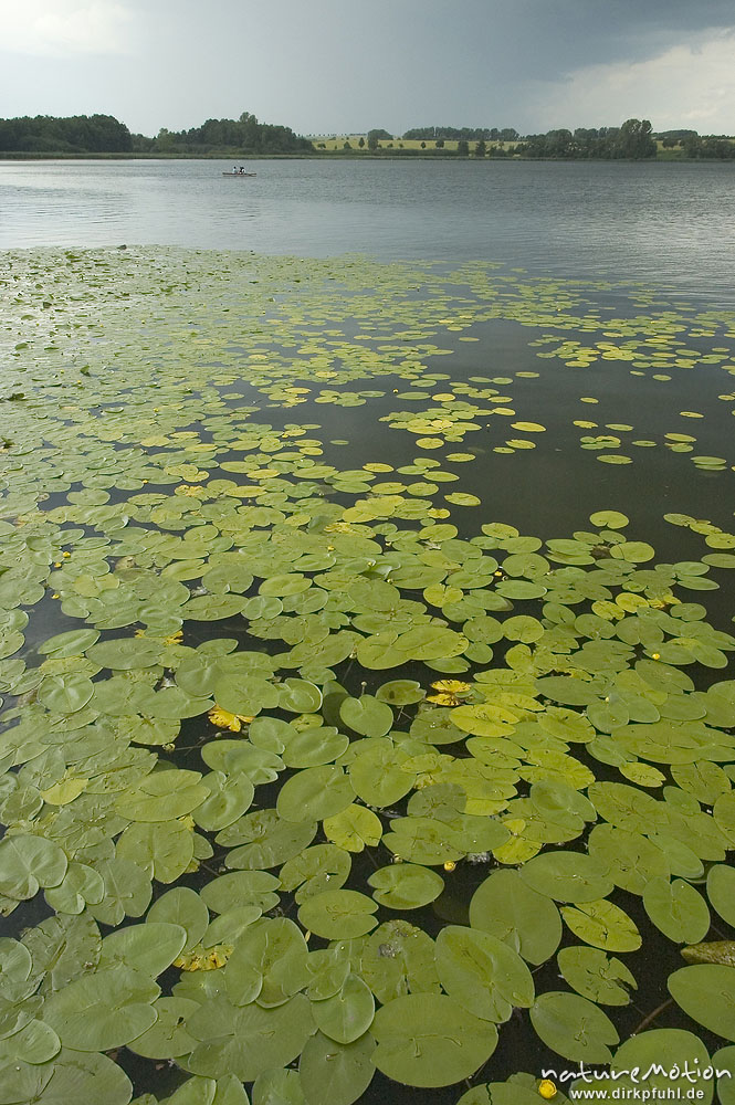Seerosenblätter und abziehender Regenschauer, Seeburger See, Deutschland