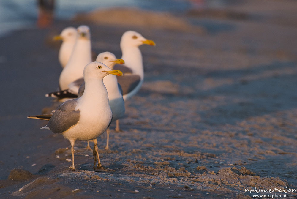 Silbermöwe, Larus Argentatus, Laridae, mehrere Tiere am Wasser direkt am Strand, Fütterung durch Touristen, Strand von Prerow, wild and controlled, Darß, Zingst, Deutschland