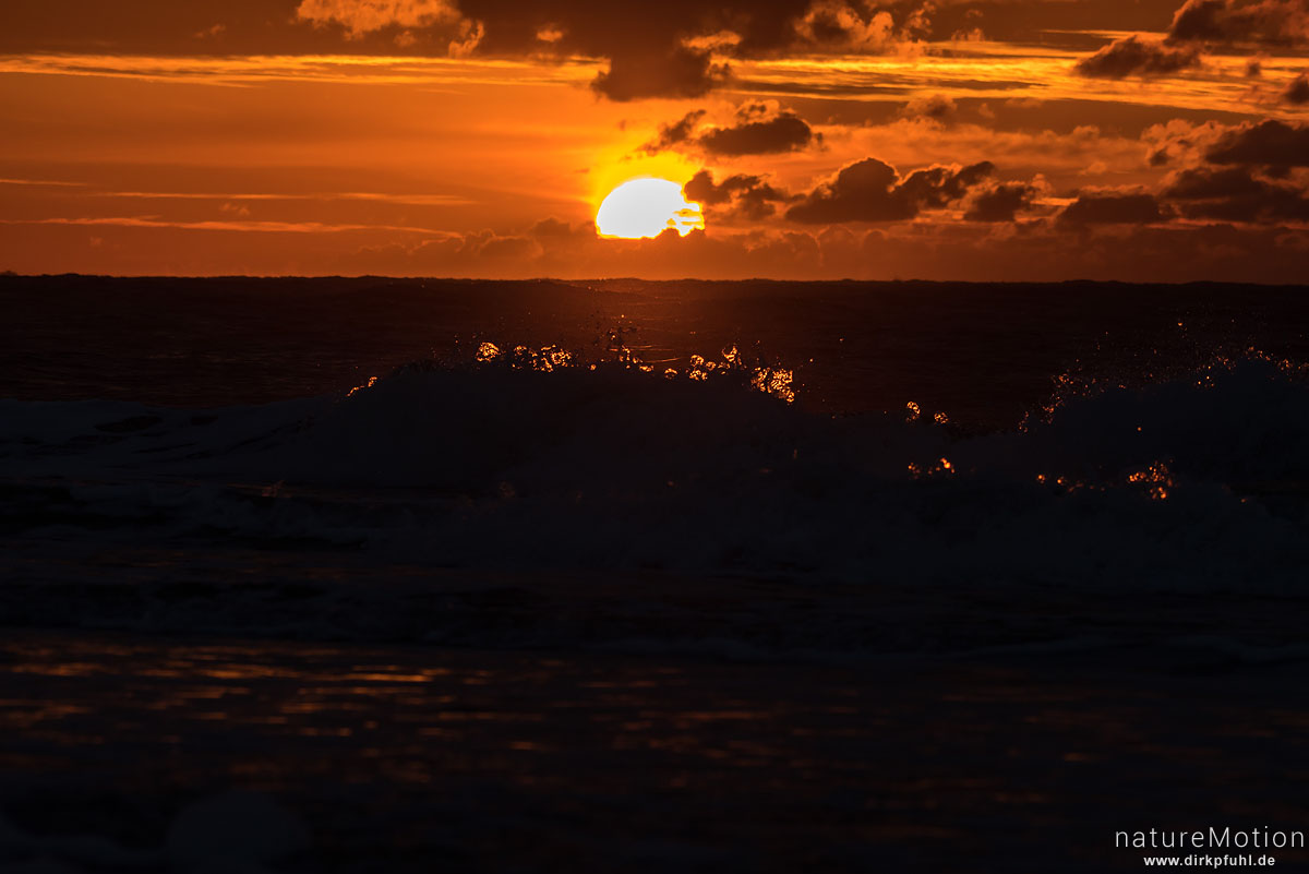 Sonnenuntergang, Spülsaum bei ablaufendem Wasser, Spiekeroog, Deutschland