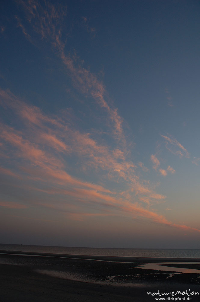 Sonnenuntergang über dem Meer, Wolken, Strandlinie, Amrum Amrum, Deutschland