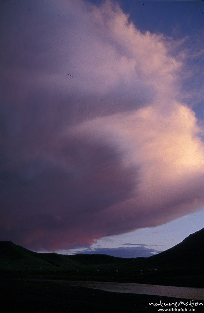 Sonnenuntergang, Wolkenturm über Orchon-Fluß, rot angestrahlt, ,