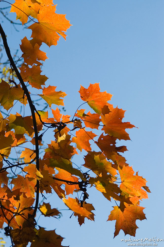 Spitz-Ahorn, Acer platanoides, Aceraceae, Laub in Herbstfärbung, Göttingen, Deutschland