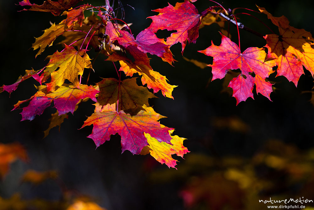 Spitz-Ahorn, Acer platanoides, Aceraceae, Laub mit Herbstf?rbung, Leinekanal, G?ttingen, Deutschland