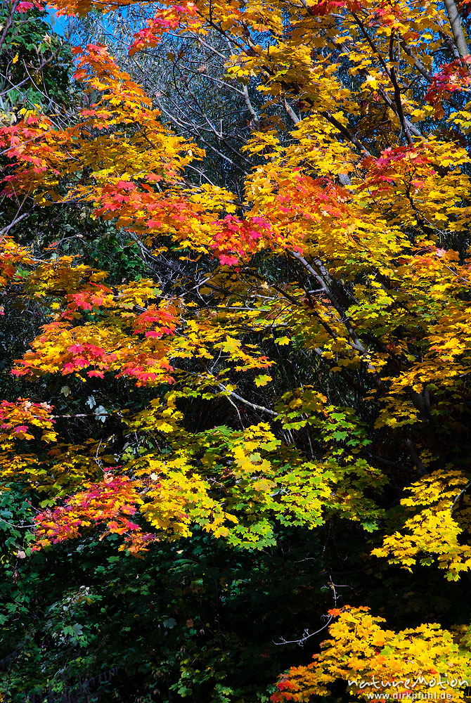 Spitz-Ahorn, Acer platanoides, Aceraceae, Laub mit Herbstf?rbung, Leinekanal, G?ttingen, Deutschland
