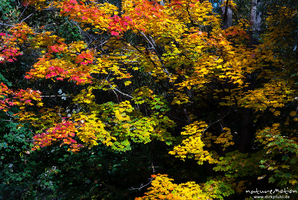 Spitz-Ahorn, Acer platanoides, Aceraceae, Laub mit Herbstf?rbung, Leinekanal, G?ttingen, Deutschland