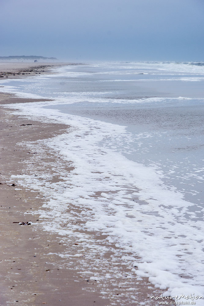 Spülsaum mit Brandung und Schaum, Strand bei ablaufendem Wasser, Spiekeroog, Deutschland