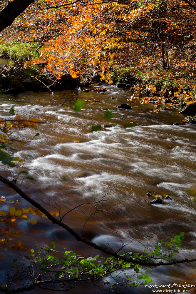 sr?mendes Wasser, Bachlauf im Herbstwald, Bode, Bodetal, Harz, Deutschland