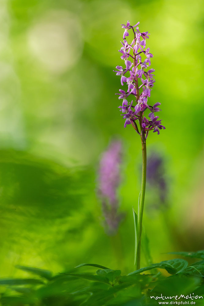 Stattliches Knabenkraut, Orchis mascula, Orchidaceae, Blütenstände im Frühlingswald, Lichtreflexe, Westerberg bei Göttingen, A nature document - not arranged nor manipulated, Göttingen, Deutschland