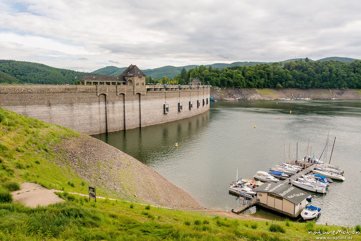 Staumauer, Staudamm, Edersee, sehr niedriger Wasserstand, Waldeck, Deutschland
