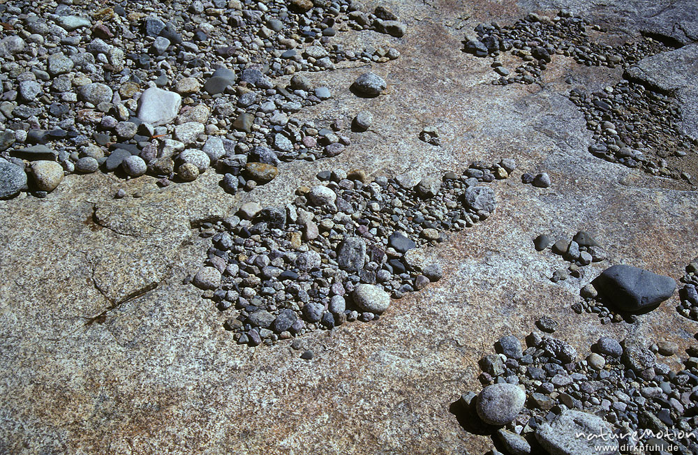 Steine / Kiesel auf Felsplatten, Tavignano-Tal, Korsika, Frankreich