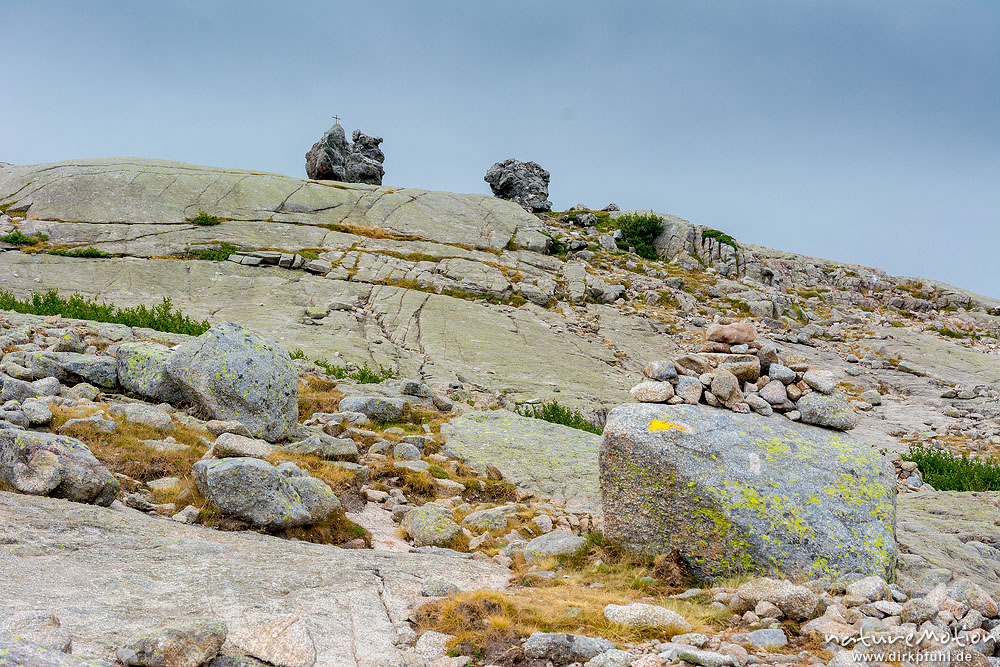 Steinm?nnchen und Gipfelkreuz, Wanderung Forsthaus Poppaghia zum Lac de Nino, Korsika, Frankreich