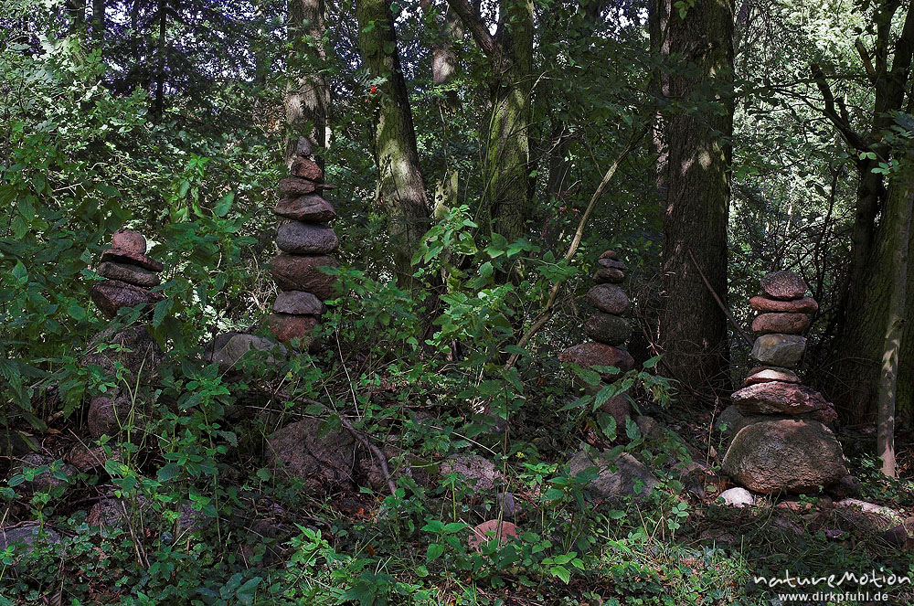 Steintürme, Steinmännchen am Wegrand, Proitzer Mühle Wendland, Deutschland