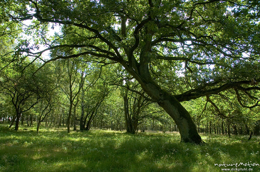 Stieleiche, Quercus robur, Fagaceae, einst frei stehender Baum, jetzt im Wald, bei Waren Müritz, Deutschland