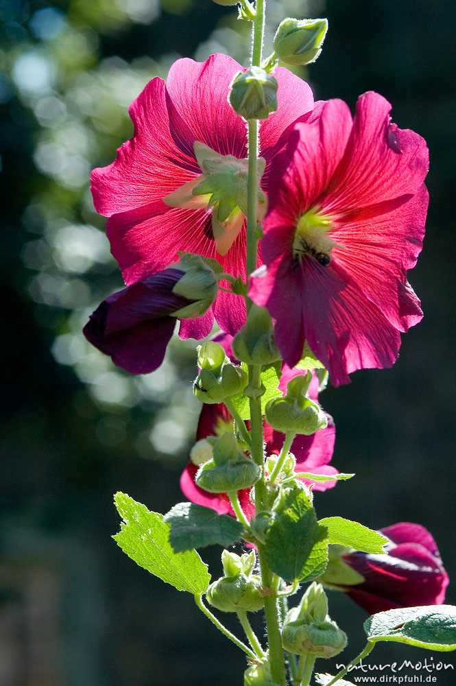 Stockrose, Stockmalve, Alcea rosea, Malvaceae, Blüte, Wasserschloss Wülmersen, Deutschland