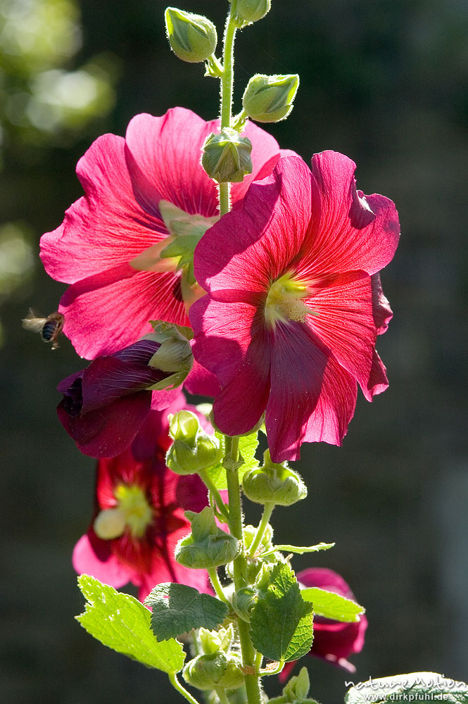 Stockrose, Stockmalve, Alcea rosea, Malvaceae, Blüte Wasserschloss Wülmersen, Deutschland