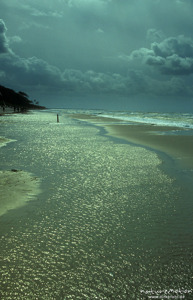Strand mit ablaufendem Wasser, Lichtreflexe, Darsser Weststrand, ,