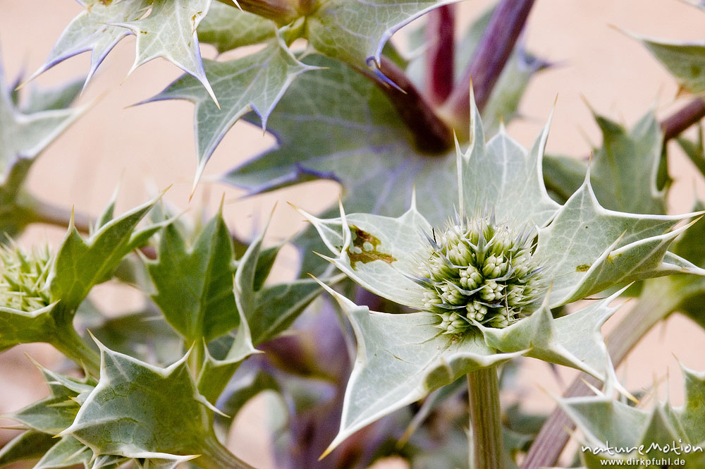 Stranddistel, Eryngium maritimum, Apiaceae, Plage d'Arone Korsika, Frankreich
