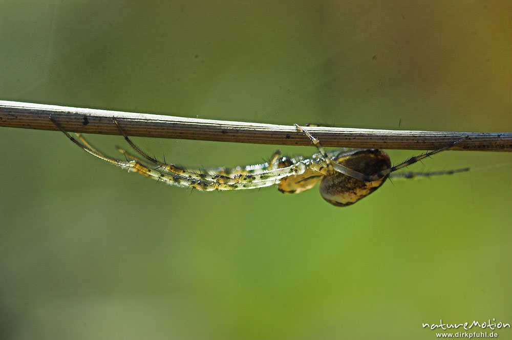 Streckerspinne, Tetragnathidae, Art ?, an trockenem Grashalm, Proitzer Mühle Wendland, Deutschland