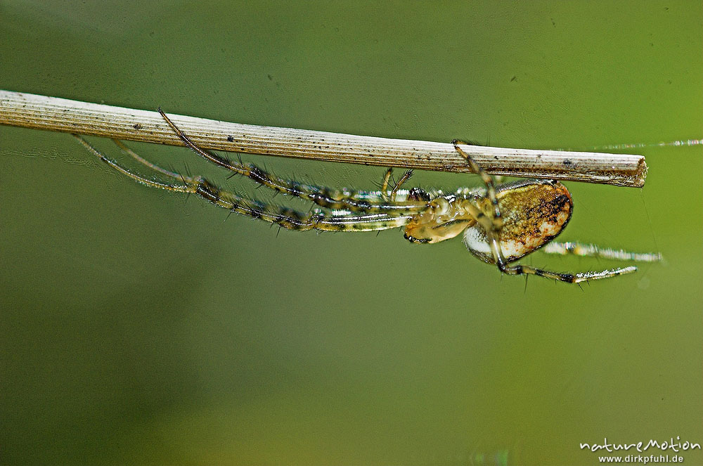 Streckerspinne, Tetragnathidae, Art ?, an trockenem Grashalm, Proitzer Mühle Wendland, Deutschland
