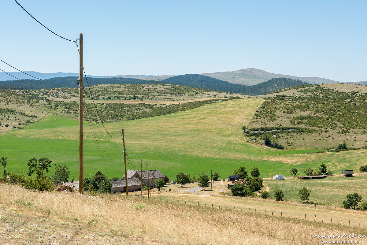 Stromleitung, Karstlandschaft der Causse Méjean, Florac, Frankreich