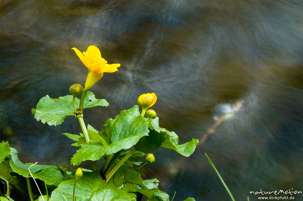 Sumpf-Dotterblume, Caltha palustris, Ranunculaceae, an Bachlauf Lillachtal, Deutschland