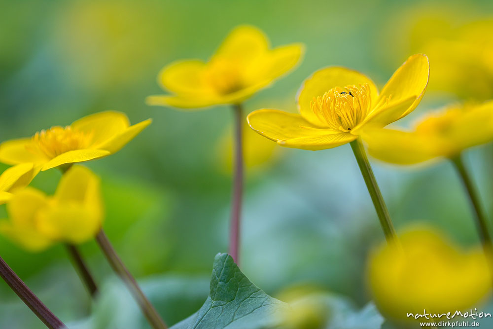 Sumpf-Dotterblume, Caltha palustris, Ranunculaceae, Blüten, Quellhorizont, Göttinger Wald, Göttingen, Deutschland