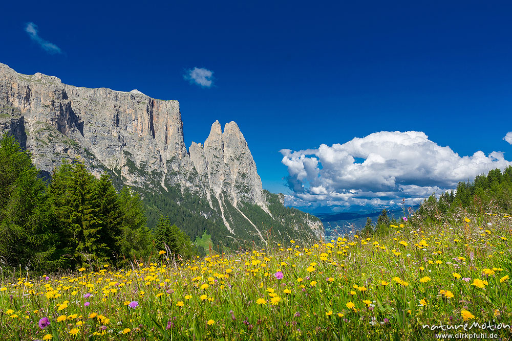 Schlern, blühende Almwiesen, Seiseralm (Südtirol), Italien ...