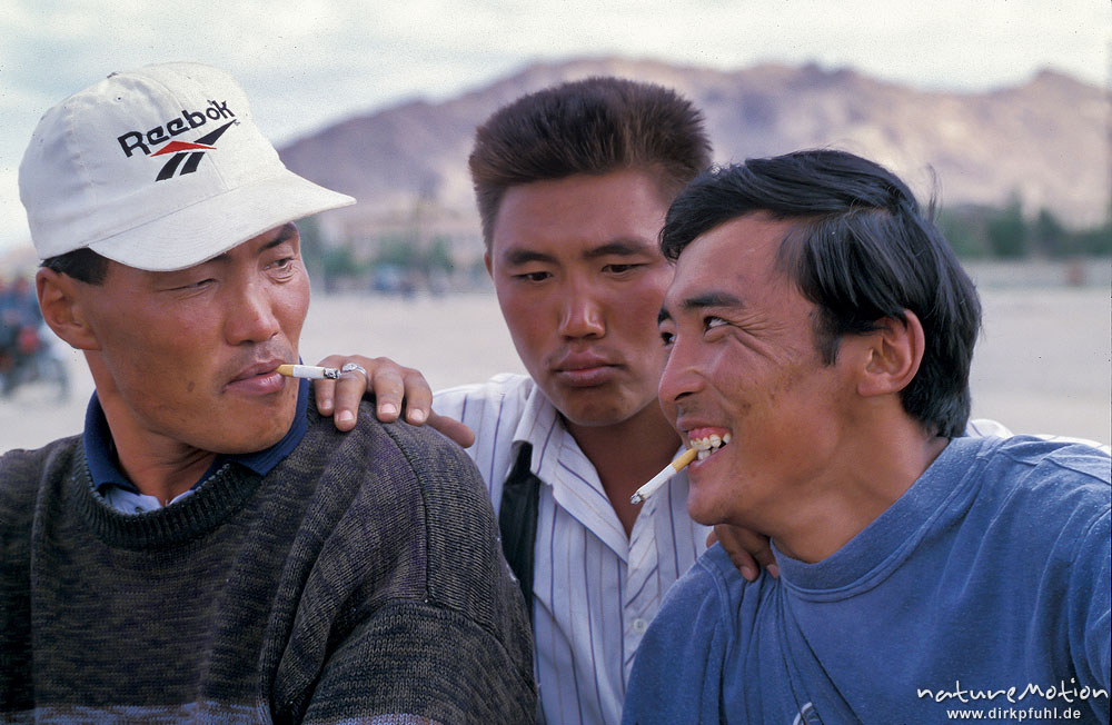 Freunde im Gespräch, Marktplatz von Chowd, Chowd, Mongolei ...