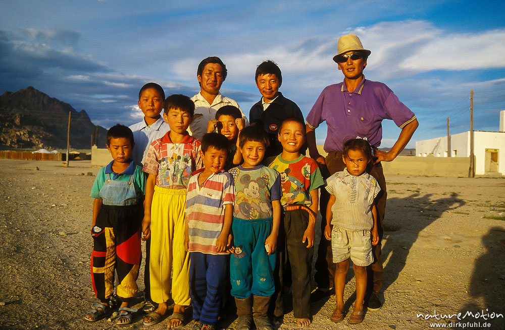 Gruppenfoto von Bewohnern des Jurtenviertels, spontan entste ...