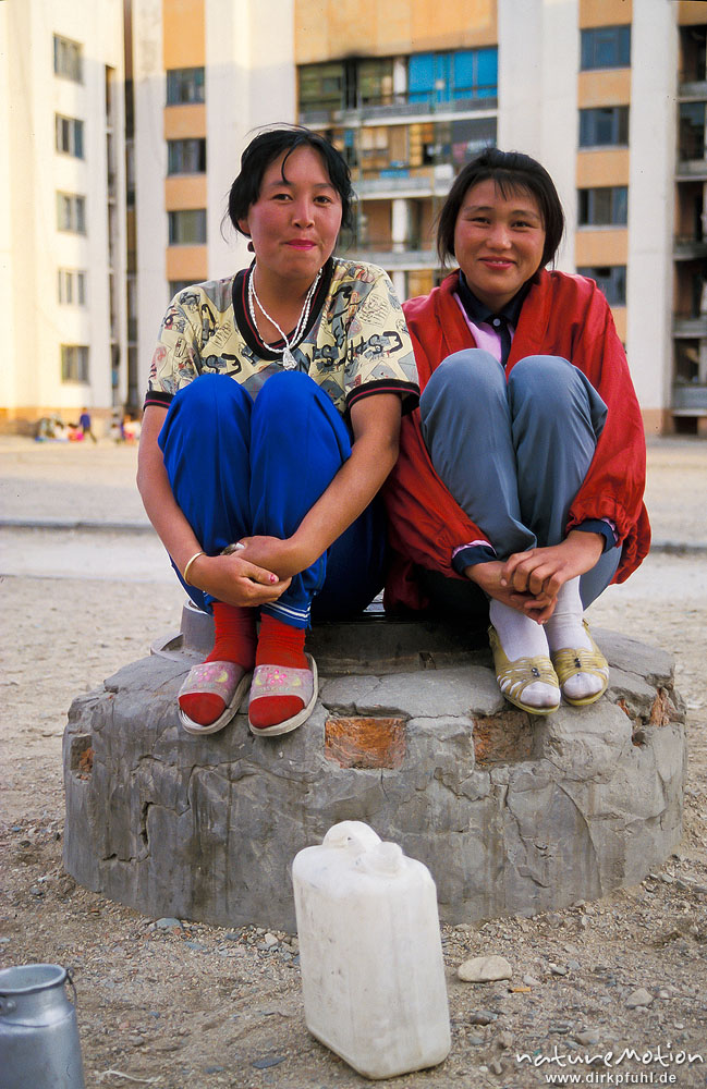 zwei Mädchen, Airag-Verkäuferinnen, Chowd, Chowd, Mongolei ...