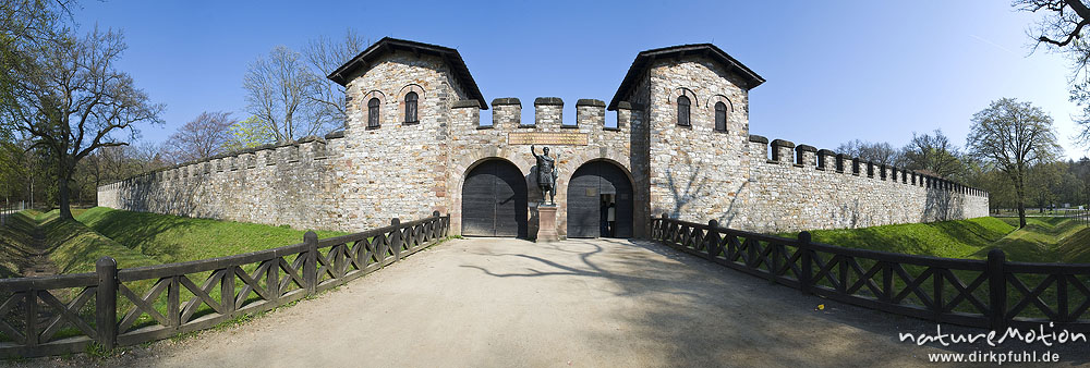 Burgtor mit Türmen, Kaiserstatue, Saalburg, Römerkastell, ...