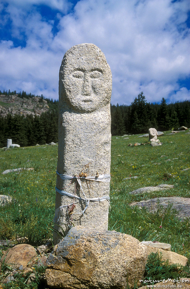 Steinstele mit graviertem Kopf, Kloster im Tal von Mandshir, ...