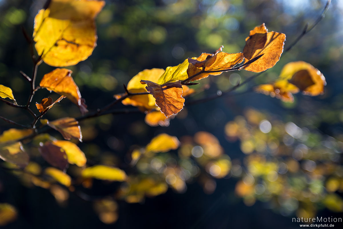 Rot-Buche, Fagus sylvatica, Fagaceae, Herbstlaub im Gegenlic ...