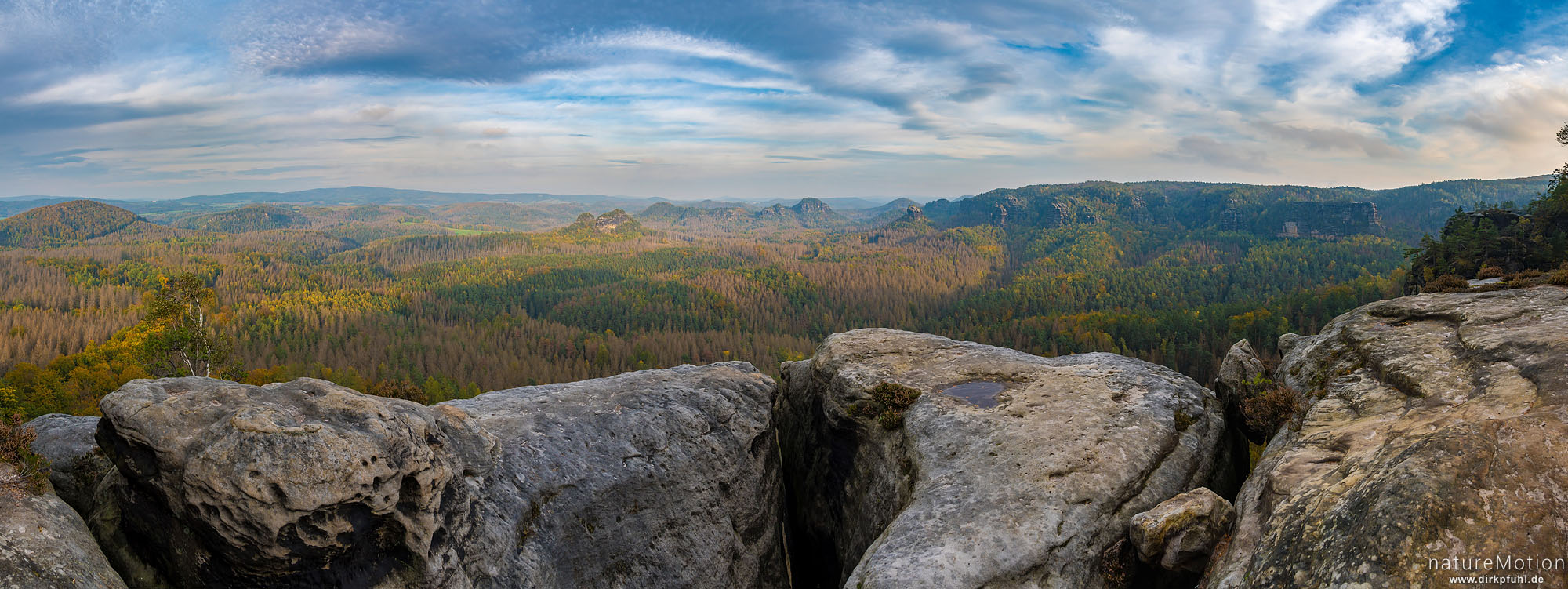 Aussicht über das Elbtal, Gratweg Schrammsteine, Herbstwald ...
