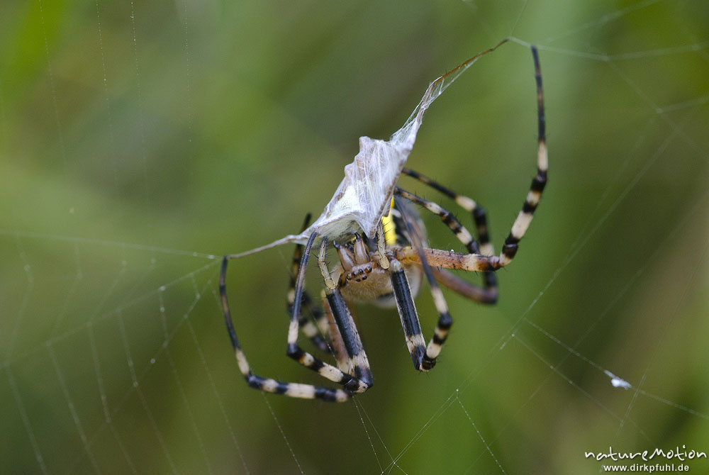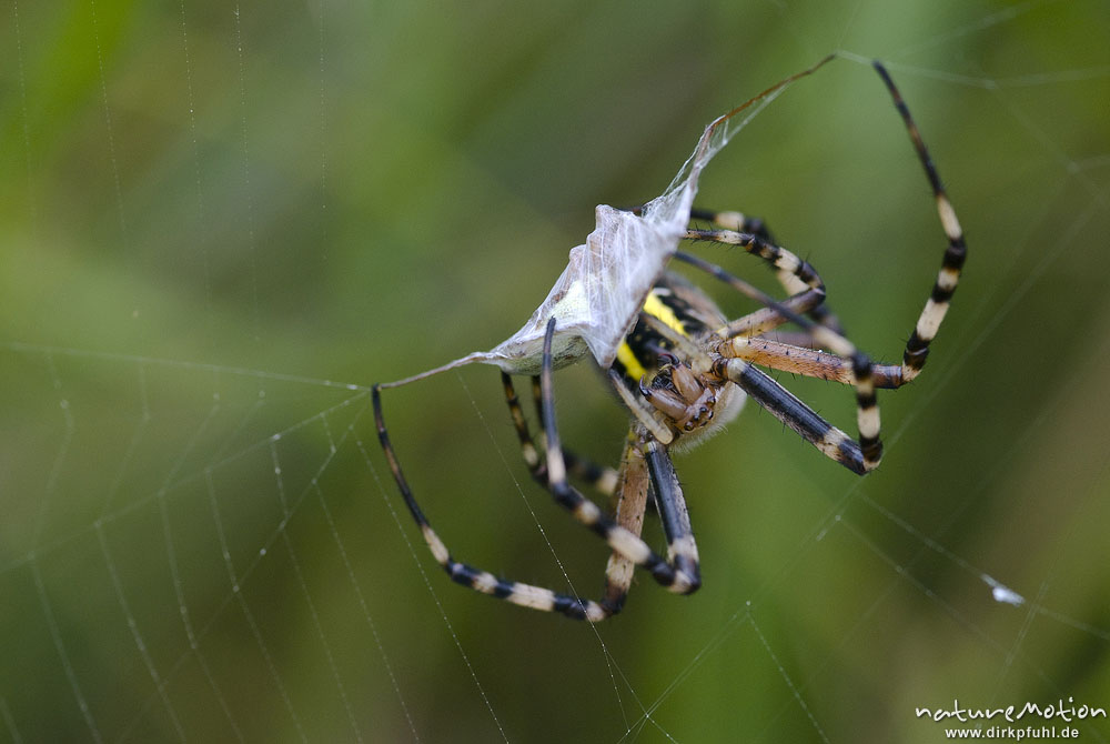Wespenspinne, Argiope bruenechii, Araneidae, Weibchen, im Ne ...