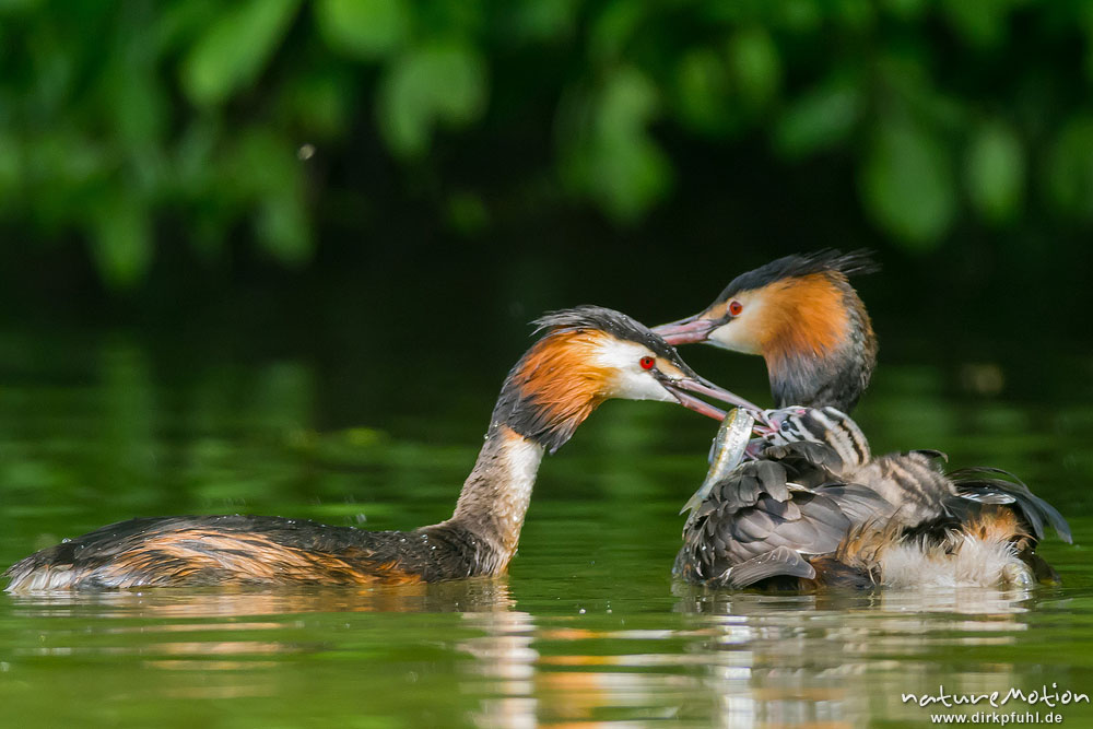 Haubentaucher, Podiceps cristatus, Podicipedidae, Paar mit K ...