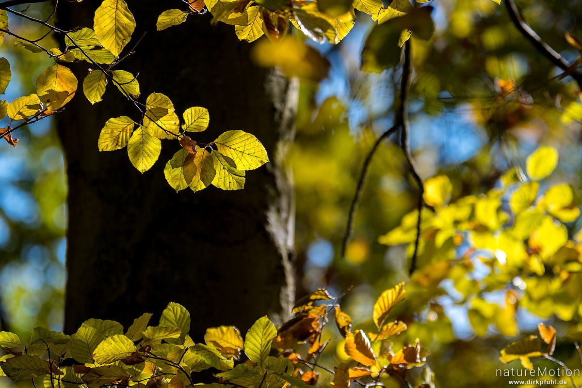 Rot-Buche, Fagus sylvatica, Fagaceae, Herbstlaub im Gegenlic ...