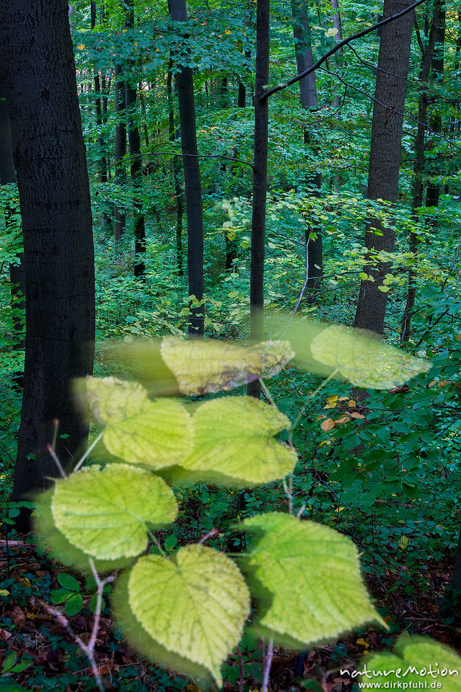Lindenblätter mit beginnender Herbstfärbung, Bewegungsunsc ...