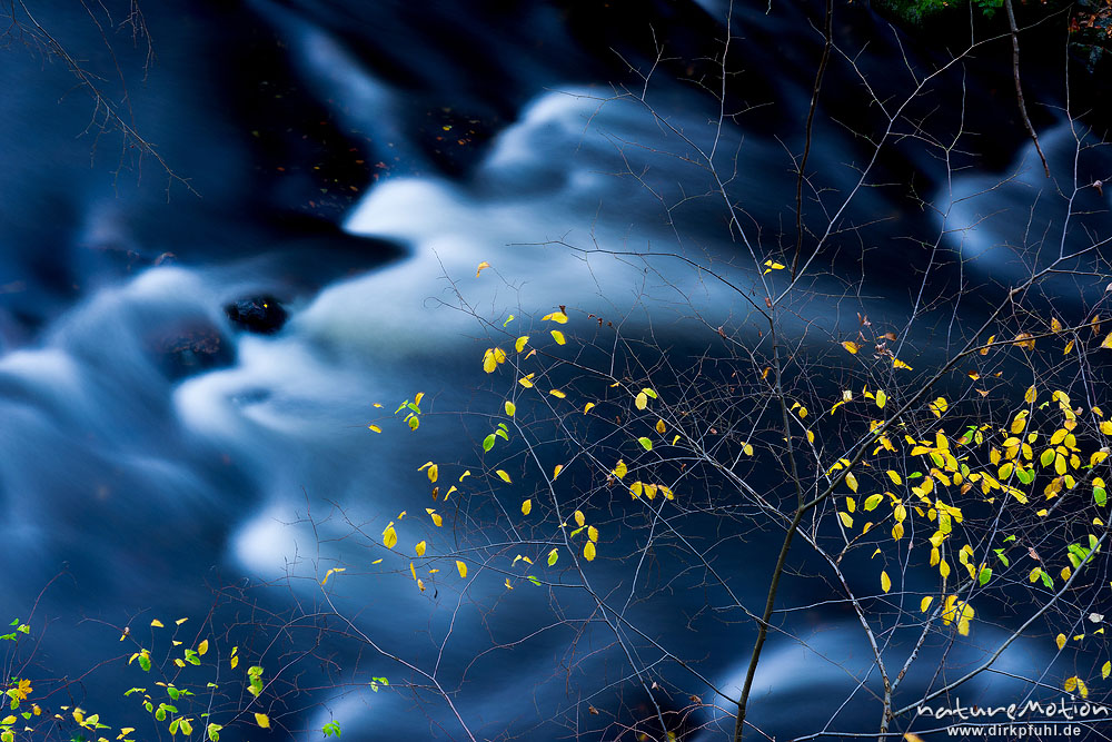 Herbstlaub vor strömendem Wasser, Bodekessel, Bode, Bodetal ...