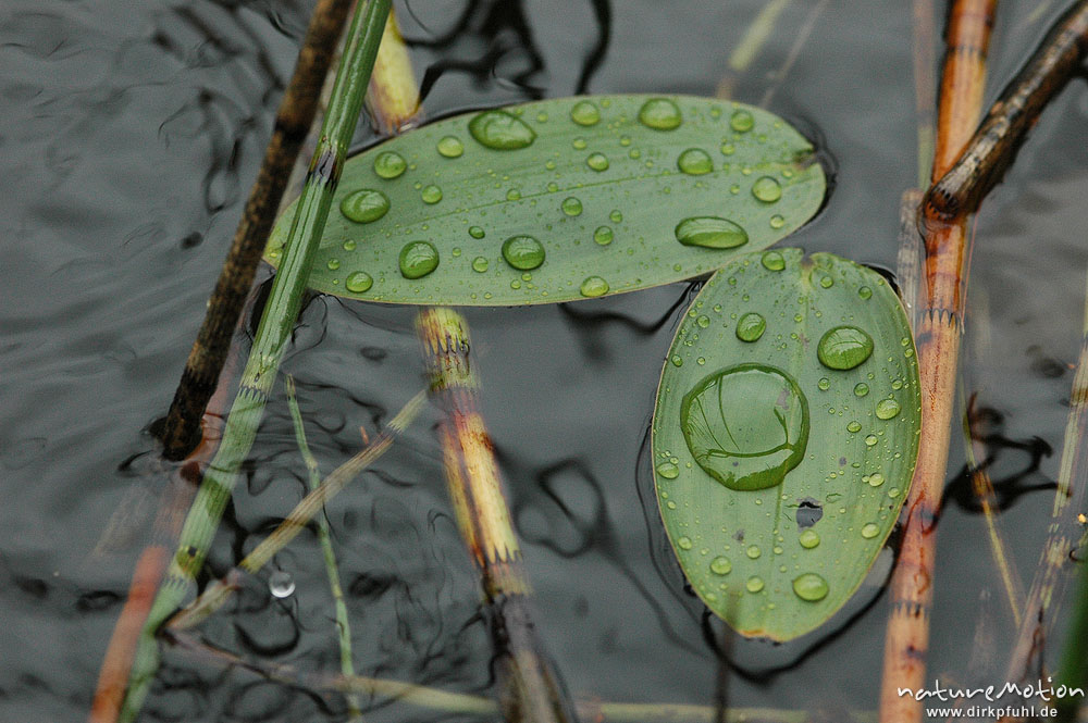 Regentropfen auf Froschlöffelblättern (Gewöhnlicher Frosc ...