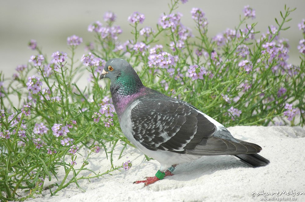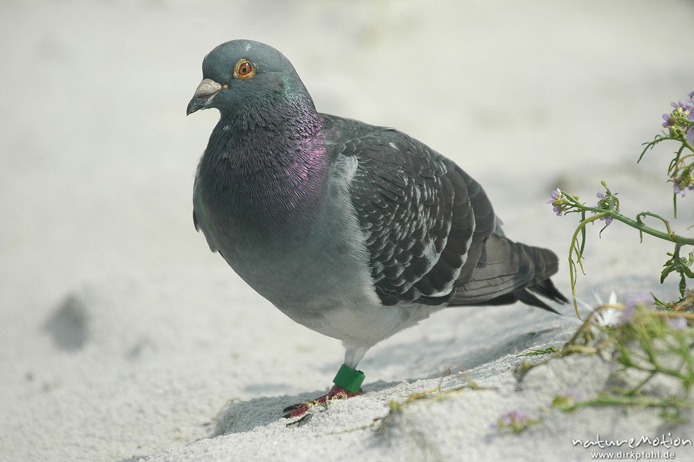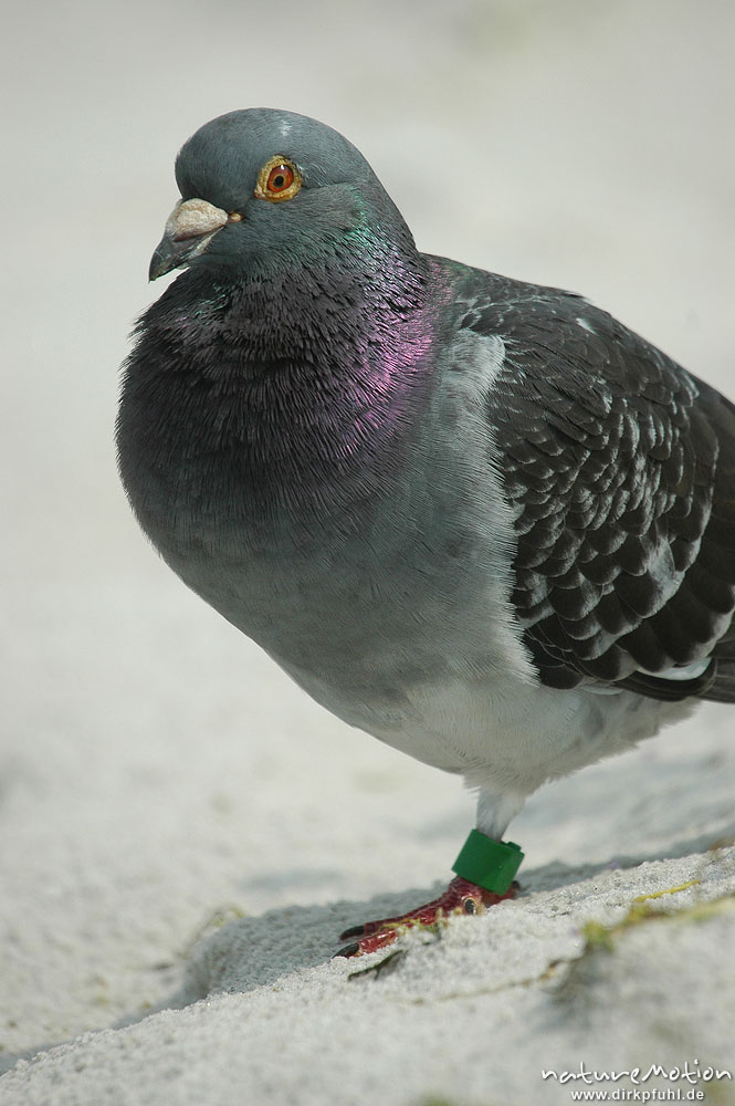 Haustaube, Felsentaube, Columba livia, Columbidae, im Sand s ...
