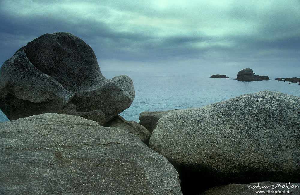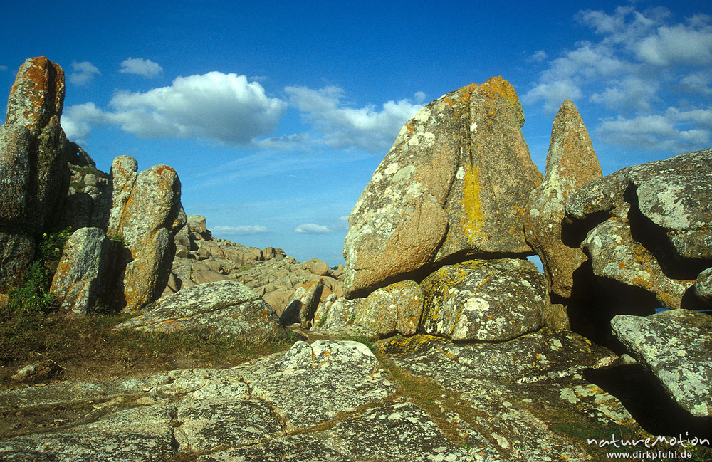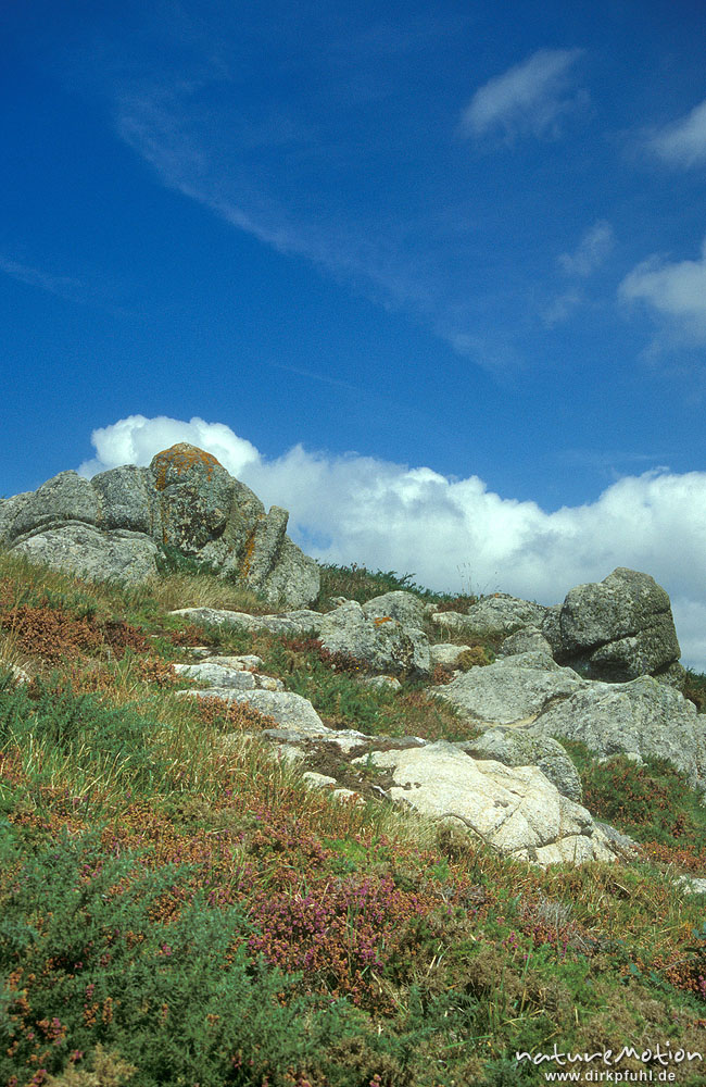Felsen, Heide und Wolken, Bretagne, Frankreich ...