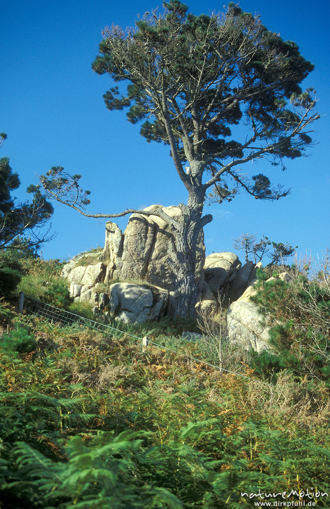 Baum, Felsen, Heide und Wolken, Bretagne, Frankreich ...