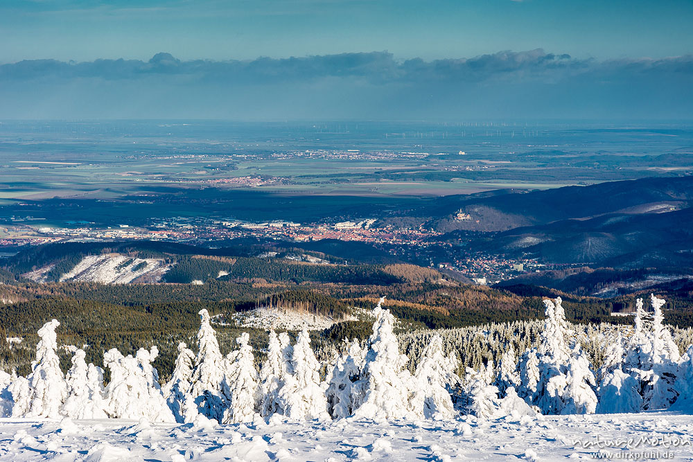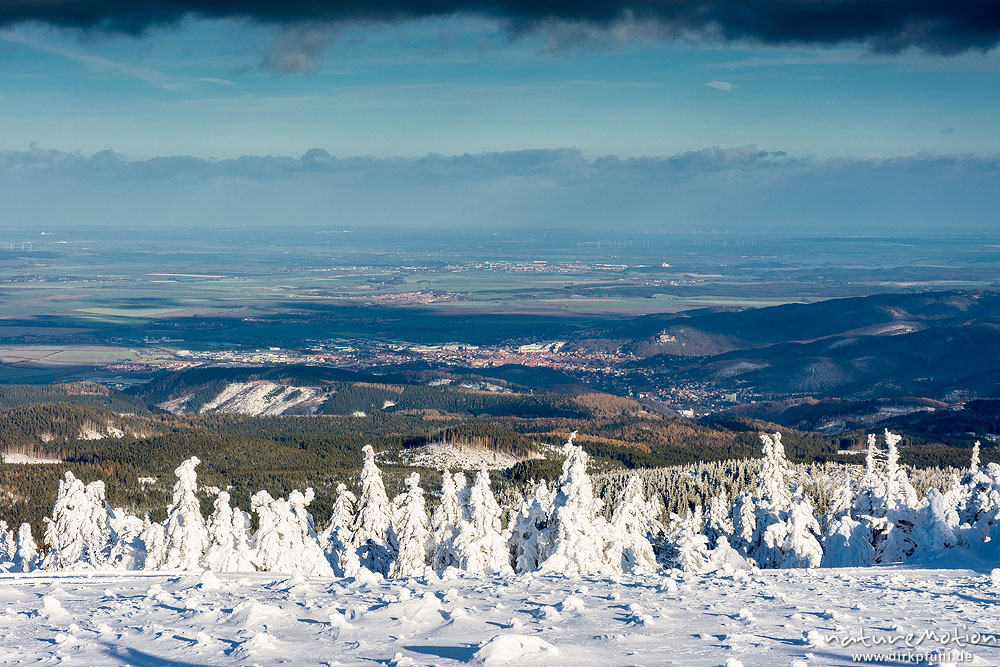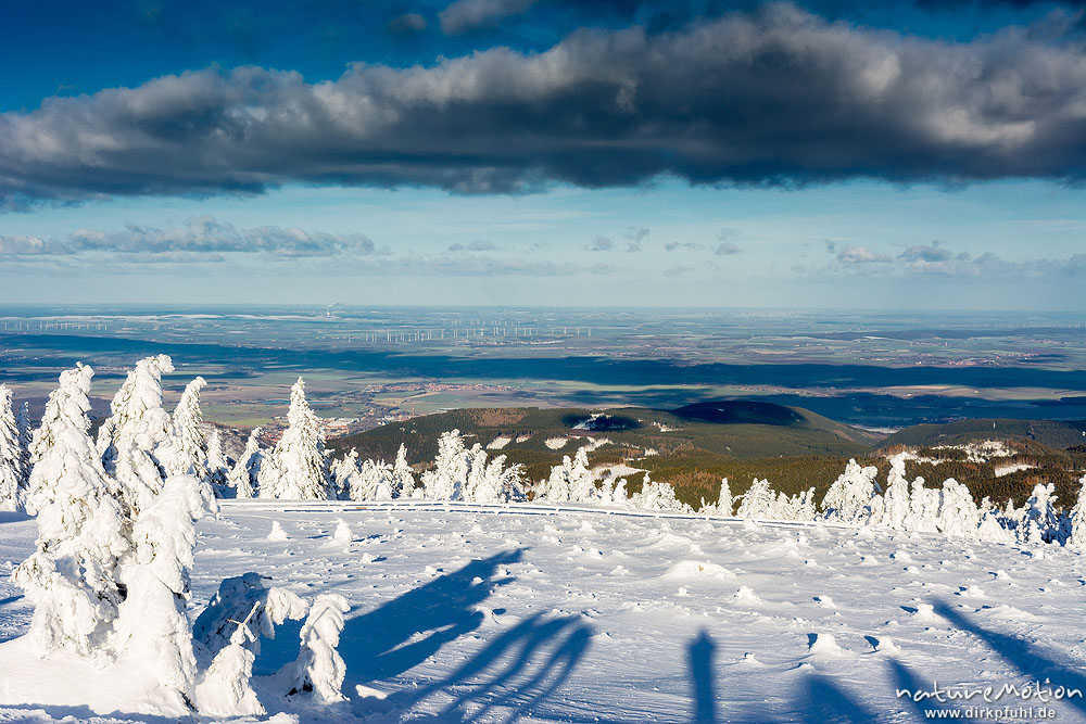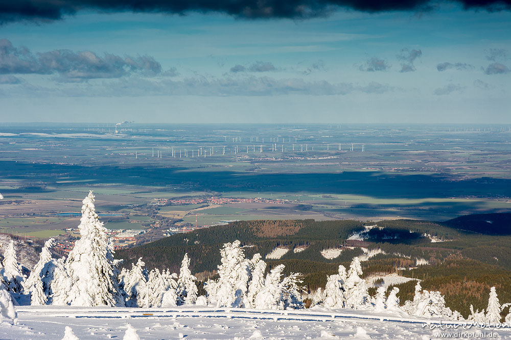 Blick vom Brocken über die Höhenzüge des Harz und das Har ...