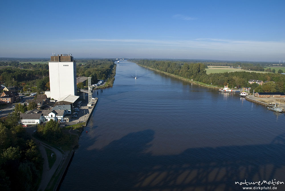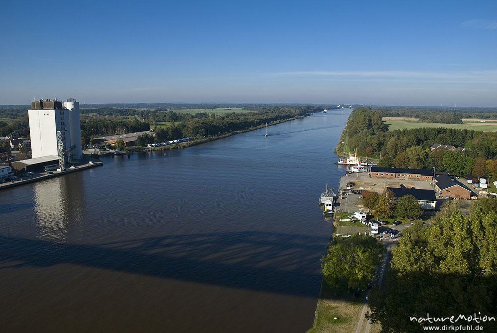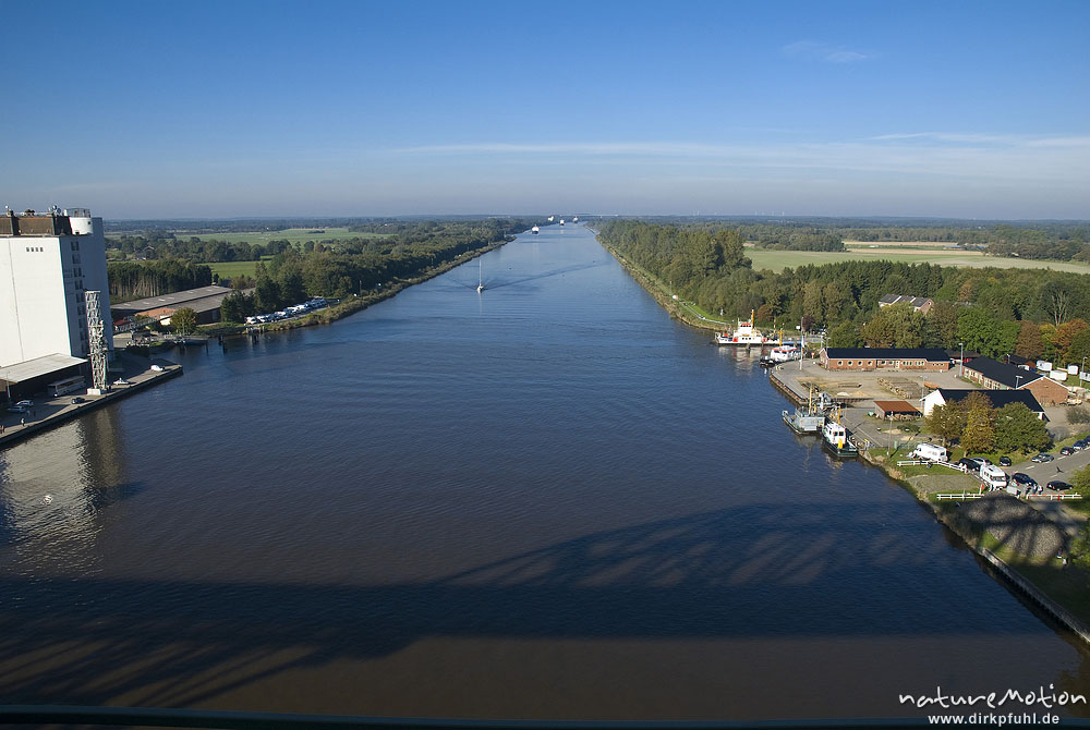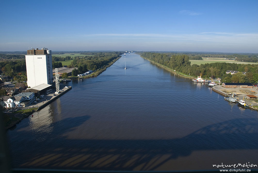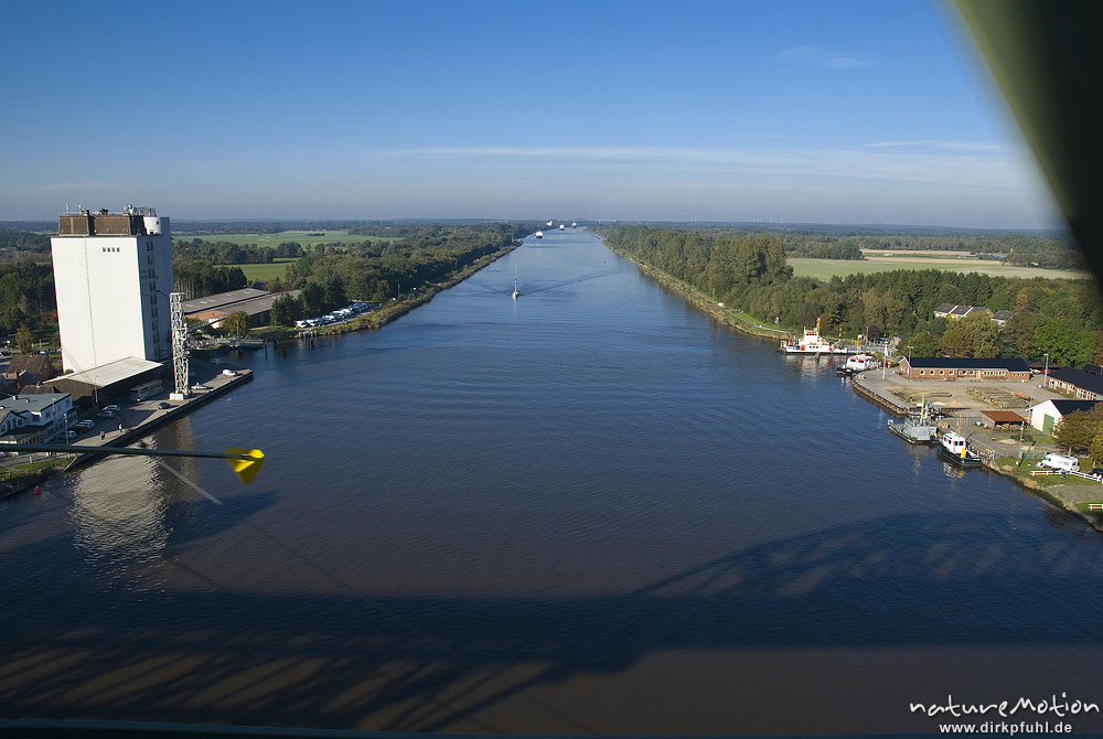 Nord-Ostseekanal, Schatten einer Eisenbahnbrücke, Fähre, S ...