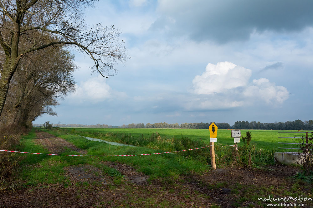 abgesperrte Wiese, Übernachtungsplatz für Kraniche, Linum, ...